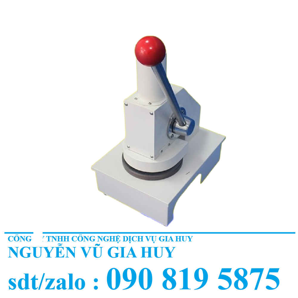 Mở khóa an toàn, đặt dao cắt mẫu định lượng 100cm2 vuông góc với mặt giấy. Dùng lực tay đều đặn xoay tay cầm theo chiều kim đồng hồ 2-3 vòng cho đến khi nghe tiếng “cạch” nhẹ. Không ấn quá mạnh gây biến dạng mẫu.